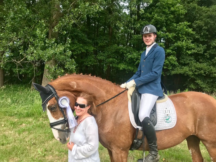 Derersten Sieg mit einer Wertnote von 8,0 ging an Azubi Nora-Sophie Köhler mit dem Pferd von Frau Dr. Monika Wiederholdt Dambeldor in A-Dressur **. Den zweiten Sieg holte sich Johanna van der Meer mit ihrer Stute Clearwater in der L-Dressur auf Trense. In dieser Prüfung gelang Azubi Hendrik Sichon Platz 3 mit unserem Berittpferd Let's Dance. Mit For Sudden Joy konnte sich Hendrik an zweiter Stelle in einer anderen A** platzieren. Einen weiteren 2. Platz konnte Johanna von der Meer mit Clearwater ...